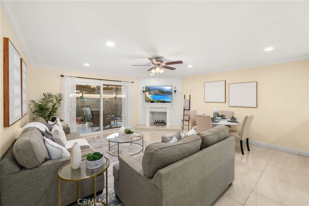 Welcome to this charming single-level condominium located in the gated Pinewood Condominiums community along E. Chapman Avenue in the City of Orange. This well-designed 2 bedroom, 2 bath residence offers 1,025 square feet of comfortable living space with a thoughtfully laid-out and functional floor plan, ideal for everyday living. The bright living room features a cozy fireplace and flows seamlessly into the dining area, creating an inviting space for relaxing or entertaining. Sliding glass doors open to a private, fenced patio, perfect for morning coffee, outdoor dining, or quiet relaxation. The upgraded kitchen combines functionality and style, featuring quartz countertops, ample cabinetry, and newer appliances. Additional highlights include spacious bedrooms, dual pane windows and sliding doors, two assigned covered carport parking spaces, and access to community amenities such as a clubhouse and in-ground pool. Conveniently located near shopping, dining, parks, schools, and major freeways, this home presents an excellent opportunity for first-time buyers, down-sizers, or investors seeking a well-located Orange condo in an established, gated community.
