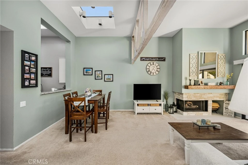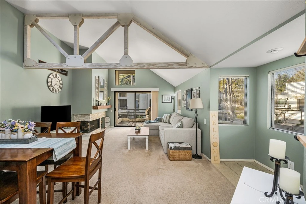 Welcome to your own private retreat in the highly desirable Villeurbanne community of Orange. This charming one-bedroom, one-bath condominium is ideally situated in one of the community’s most sought-after locations, surrounded by mature trees and tranquil greenbelts. Step inside to discover a bright and open floor plan featuring dramatic vaulted ceilings, oversized skylights that fill the home with natural light, and a cozy fireplace that serves as the centerpiece of the living room. The spacious dining area flows seamlessly from the kitchen and offers convenient bar-top seating, creating a comfortable space for both everyday living and entertaining. A private balcony extends the living space outdoors, perfect for al fresco dining, morning coffee, or simply relaxing while enjoying the peaceful, tree-lined surroundings. The generously sized bedroom is filled with natural light and offers ample closet space. Additional highlights include an inside laundry closet with full-size washer and dryer, adding convenience and functionality. Residents of Villeurbanne enjoy resort-style amenities including sparkling pools, relaxing spas, BBQ areas, and access to a private, reservable community clubhouse. Outdoor enthusiasts will appreciate the nearby walking paths, hiking trails, and close proximity to Peters Canyon Regional Park and Irvine Regional Park. Convenient freeway and toll road access make commuting easy. This home presents an incredible opportunity to enjoy peaceful hillside living in one of Orange’s most desirable communities.