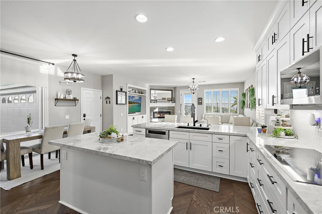 Welcome to one of Serrano Heights' finest view lots, where panoramic city lights, rolling hills, and ocean-to-Catalina vistas greet you from nearly every angle of this meticulously upgraded 4-bedroom, 2.5-bathroom residence. This is not your typical resale. Step inside and rich hardwood floors, designer lighting, and twin electric fireplaces immediately set the tone. The remodeled kitchen commands attention with new cabinetry, elegant countertops, and modern appliances, with a gas rough-in already in place for those who prefer a gas cooktop. The open floor plan makes entertaining effortless, from the formal dining room with butler's pantry to the generous family room that spills into the kitchen and sun-filled breakfast nook. Upstairs, the primary suite is a true retreat. The fully redesigned en suite features an oversized walk-in shower, dual vanities, and a thoughtful 3-way light switch so you never have to leave the comfort of your bed to adjust the lights. Every bathroom in the home has been completely remodeled. Outside, a custom paver patio extends the living space beneath those sweeping views. Programmable Gemstone architectural lights wrap the exterior and are fully controlled from your phone, whether setting the mood for a dinner party, lighting up for the holidays, or adding a layer of security while you're away. Additional upgrades include fresh exterior paint, new sliding glass doors, a rear door with built-in blinds, new A/C compressor and condenser, new hot water tank, and a modernized sprinkler system. Nestled in one of East Orange's most sought-after communities with access to miles of hiking and biking trails, parks, and top-performing schools including Anaheim Hills Elementary, El Rancho Charter, and Canyon High. Minutes to shopping, dining, and easy freeway access. Thoughtfully upgraded, move-in ready, and waiting for its next chapter.