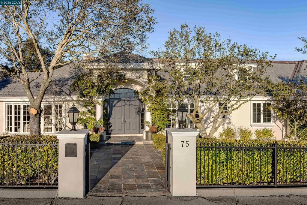 Perched atop the Orinda Oaks Open Space Preserve, this estate offers sweeping views of Mt. Diablo and the Berkeley hills. Mature oaks, Japanese maples, wisteria, lavender, roses, and other lush foliage flank the home. Step inside the foyer beneath 15-foot ceilings. To the left, a 360-sq-ft living room sits under a coffered ceiling; to the right, the dining room accommodates 10-12 with garden views. The kitchen features a large island with bar seating, a breakfast nook nestled into a bay window, 2 ovens, 2 sinks, 2 dishwashers, and ample counter space. Adjoining the kitchen, the family room spans more than 360 sq ft and includes a full wet bar. A 240-sq-ft office and large wraparound patio offer inspiring views—including glimpses of SF Bay. Four bedrooms are on the lower level, including a private guest/in-law suite or exercise room. The 460-sq-ft principal suite upstairs offers a marble fireplace, 2 walk-in closets, a nursery or exercise room, and a luxurious bath with steam shower, jacuzzi tub, sauna, dual vanities, and skylights. Outdoor living is equally distinguished with a covered swimming pool, built-in grill, and pergola-shaded lounge area with a new gas firepit overlooking the Preserve’s natural splendor.