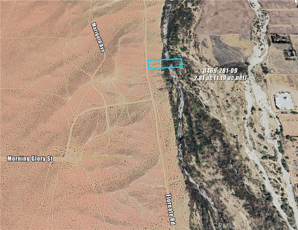 2.81 ac Rural Living parcel on Floreate Rd along the west side of the Mojave River in Oro Grande/Adelanto. River flows above ground in this area. Back half of lot drops down into River area. Access via Hwy 395 to Colusa Rd, to Helendale Rd, to Purple Sage/Morning Glory, to Floreate. 4x4 Vehicle recommended. Seclusion and the River call you. 9 Lots total available on/off Floreate (6 on River, 3 off). Please contact Listing Agent for more information.