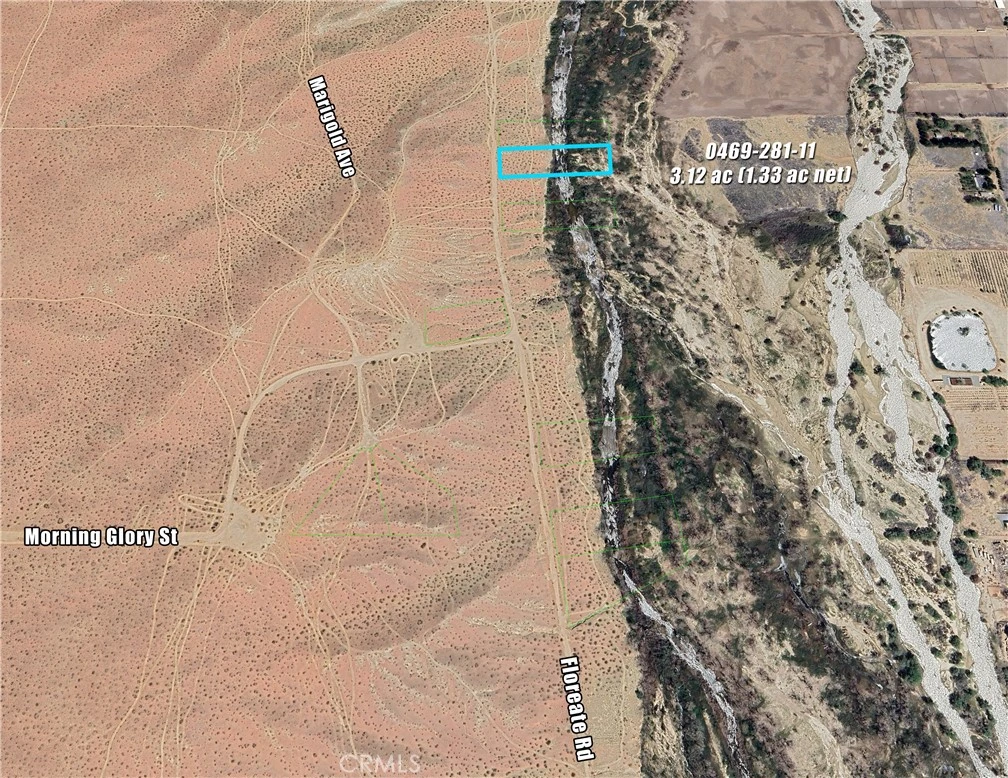 3.12 ac Rural Living parcel on Floreate Rd along the west side of the Mojave River in Oro Grande/Adelanto. River flows above ground in this area. Back half of lot drops down into River area. Access via Hwy 395 to Colusa Rd, to Helendale Rd, to Purple Sage/Morning Glory, to Floreate. 4x4 Vehicle recommended. Seclusion and the River call you. 9 Lots total available on/off Floreate (6 on River, 3 off). Please contact Listing Agent for more information.