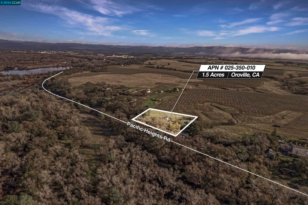 Rarely available 1.5 Acre near the Feather River just 10 miles from central Oroville. Across the road from the Oroville Wildlife Area with miles of hiking and biking trails. Not in an HOA and no CCRs.