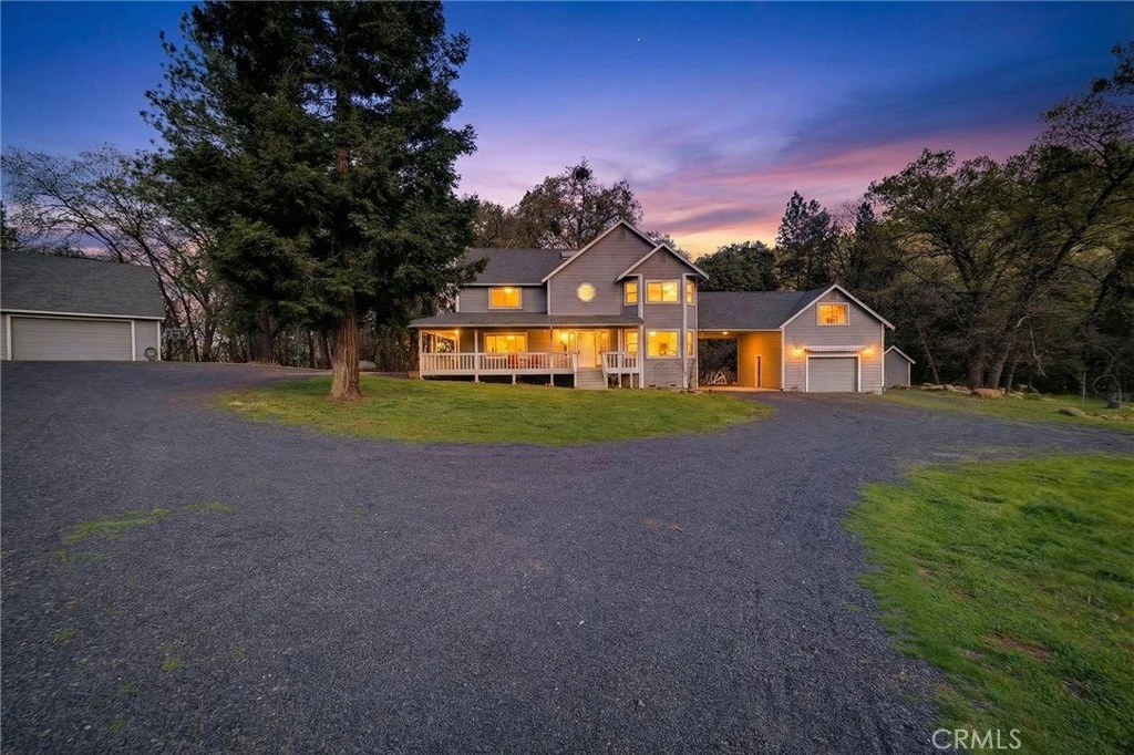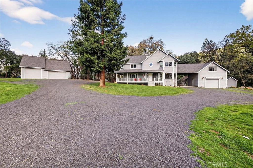 This gated 5 acre property and beautiful home has it all! Located only 2 miles from Lake Oroville and a short 7-8 miles to town for shopping. The home offers 4 bedrooms (with the possibility of 5 bedrooms) and 2.5 baths. The upper level has 3 large bedrooms with the lower level offering the flexible two rooms that could be a 5th bedroom, office or an in-law set up with its own entrance. There is an attached garage with an additional bonus area of around 500 square feet(not included in the total living area) and a detached shop of approximately 1200 sqft feet with two large roll up doors and a room off the back for storing wood and more. The bonus area, above the attached garage, has endless uses as a guest area, office, kids play room, movie room, studio, storage and much more. There is a fenced, raised-bed garden area, a kids play area with trampoline, swings and artificial turf for easy care and a large back deck. A wrap around porch to enjoy the view in the front, a seasonal stream and entertaining area in the back and plenty of room, on the rest of the property, for animals, toys, storage and much more. View the pics and video and decide for yourself. This property and home really has it all! Call for a showing today because this one won't last long!
