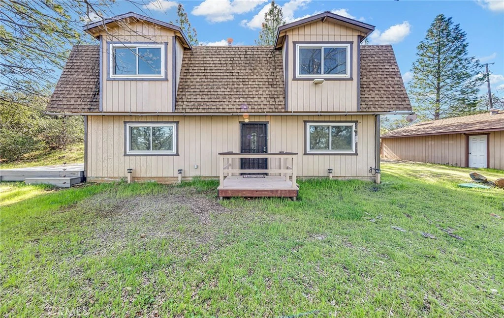 Your Private Retreat Awaits! Tucked away on 6.25 acres in the East Foothills near the lake, this property offers the perfect balance of privacy and convenience. The spacious 3-bedroom, 2-bathroom home features an inviting layout with all bedrooms located upstairs, providing separation from the main living areas. The kitchen boasts ample storage, stainless steel appliances, a 6 burner stove and plenty of counter and cabinet space, making it a dream for cooking and entertaining. Downstairs, you'll find a comfortable living room with a pellet stove, a separate family room, and a dining area with views of the peaceful surroundings. Outside, the detached 3-car garage/shop provides endless possibilities, along with two additional outbuildings for extra storage or hobbies. Enjoy the space and seclusion while still being just a short drive from town and outdoor recreation. New well and septic both installed in 2021.