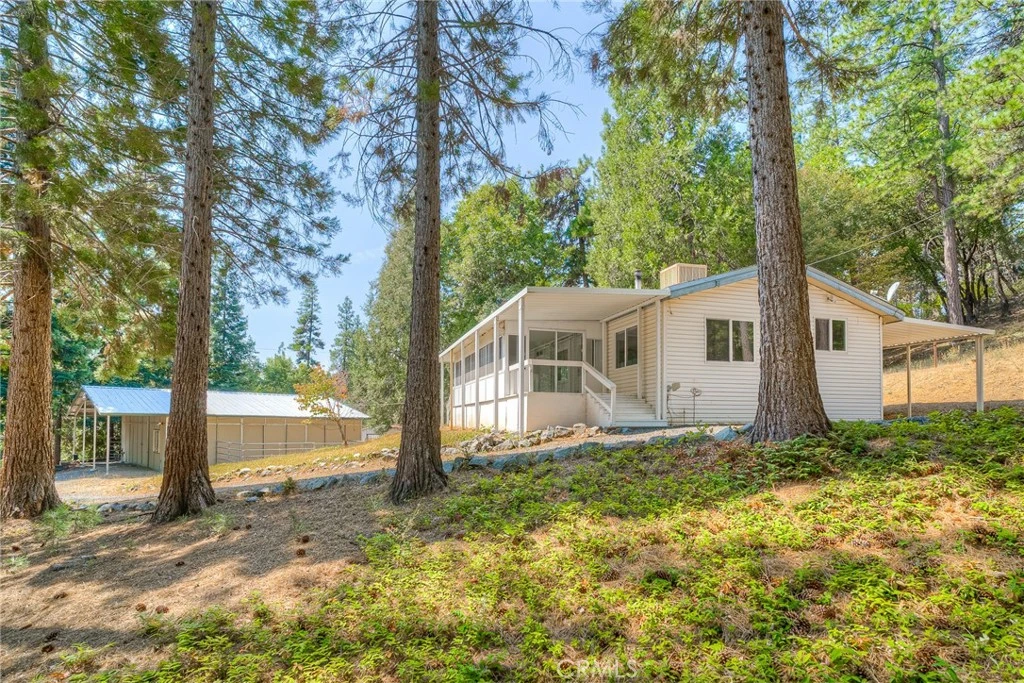 Stunning 15 Acre horse ranch on Lake Concow. This unique property is cross fenced for horses and farm animals. Two incredible metal horse barns provide ample fully covered stalls, hay/feed storage and an entire office for tact and all your animals’ necessary needs. One Barn is fully enclosed protecting everything inside from weather and includes an office, workshop area, multiple stalls and turnout pins. Located behind this barn, is an additional, third large metal storage barn for all your farm-related equipment. The stunning horse training arena is meticulously leveled with care and built for horse training and riding! The property is fully accessible with redwood tree lined trails, fenced garden areas, detached horse stalls in the pastures and boasts natural water shed with a lush, seasonal creek. The trustee recently had the five acres resting on Lake Concow masticated and mulched providing stunning access and views of the nearly 400 feet of shoreline to Lake Concow. This is a great spot to build a custom second home, and would provide stunning views of the lake, sunsets and nature. Three parcels make up the 15 acres total and are being sold together, providing one of the most stunning privately owned ranches in the area. The 2-bedroom, 2 bathroom manufactured home has had many updates over the years to include the primary bathroom and kitchen along with flooring throughout. Recently the entire home was painted inside! There is a attached carport providing access directly into the home. The front of the home has a fully enclosed sun porch to enjoy the beautiful surroundings! There are SEVERAL wells on the property, owned SOLAR and a Generac generator. This is a rare opportunity to purchase nearly unscathed property in Concow. The tree canopy is matured, groomed and ready for you to enjoy all the mountain ranch life, with lake front property! Call your Realtor today to schedule a private tour.