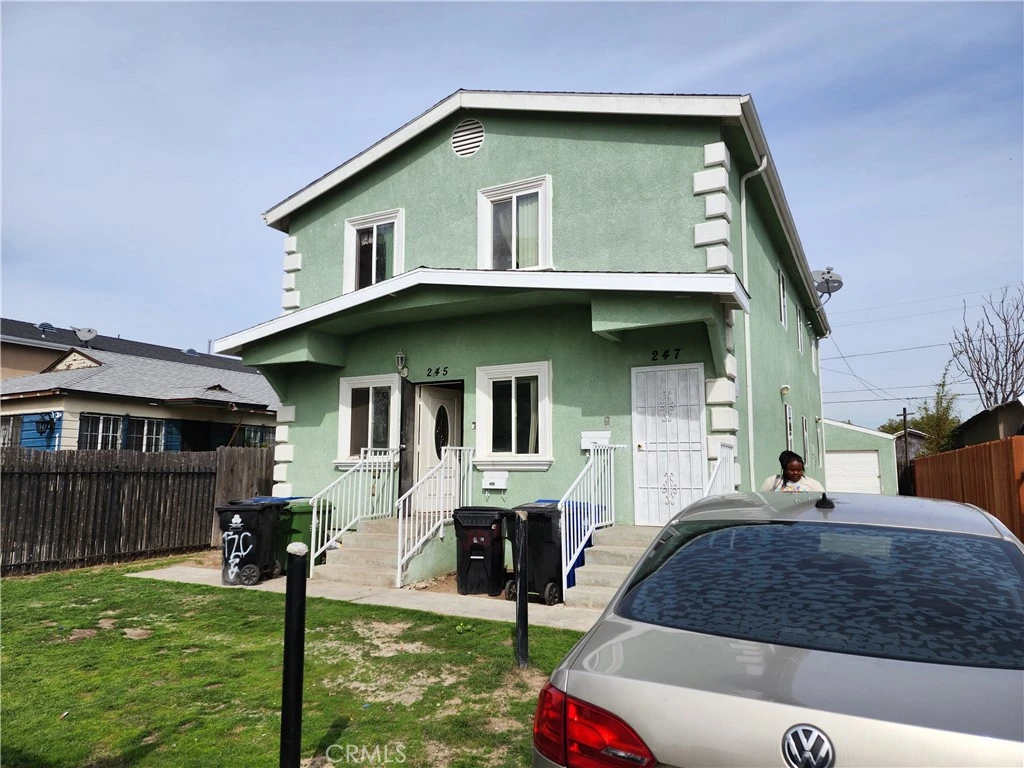 4 bed / 2 bathroom, two-story duplex. Parking on street. Unit 245 is on the bottom level. Built in 2009. Carpet throughout, granite counters, custom cabinets and vanities, and ceiling fans. Stove and refrigerator included and central heating. Centrally located in Los Angeles, nearest freeway is 110.