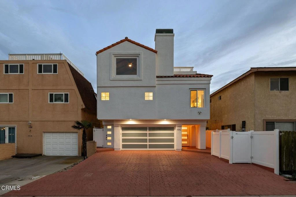 Tucked just steps from the shore, this modern beach residence offers privacy, natural light, and effortless indoor-outdoor living. Clean-lined coastal architecture opens to a bright, open interior, complemented by multiple outdoor spaces, including a private rooftop deck with unobstructed views of the Anacapa Islands.Designed with both comfort and function in mind, the three-story home features 4 bedrooms and 3.5 bathrooms across approximately 2,826 square feet. Recent upgrades emphasize quality and thoughtful design, including updated kitchen cabinetry and appliances, marble-look quartz countertops, spa-like bathrooms with a steam shower in the primary suite, custom stainless steel handrails, interior glass railings, and automated window shades.Outdoor living is a defining feature, with three decks - including an epoxy-finished rooftop deck - enhanced exterior privacy hedging, and a private backyard spa. The low-maintenance exterior and secluded layout create a peaceful retreat from street activity while remaining close to the shore.Additional features include a built-in vacuum system, marble fireplaces, multiple televisions throughout the home (including outdoor areas), an epoxy-finished garage floor, frosted glass garage door, private driveway, and a 2-car garage.Ideal as a full-time residence or lock-and-leave coastal escape, this home delivers privacy, comfort, and refined coastal living in one of the area's most sought-after beach neighborhoods.