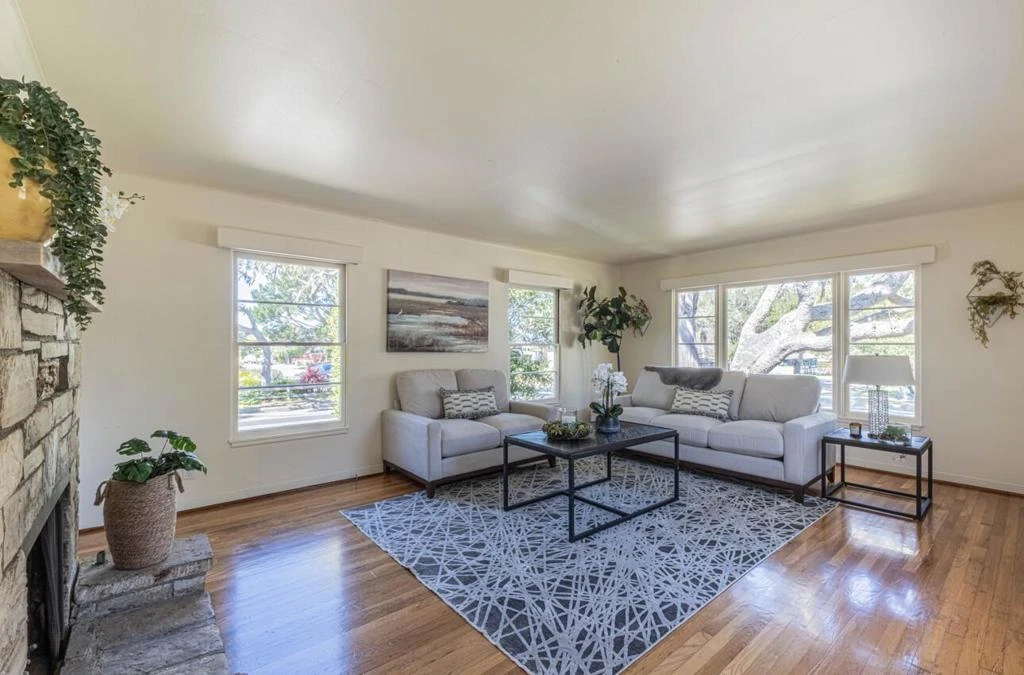This quintessential single-story Pacific Grove home is located in a desirable neighborhood near the towns beloved schools and offers light-filled interiors, classic character, and the coastal lifestyle that makes this seaside community so special. The 3-bedroom, 2-bath residence provides 1,326 ± sq ft of inviting living space on a 5,400 ± sq ft lot and blends timeless charm with thoughtful updates. Inside, freshly refinished oak hardwood floors and new interior and exterior paint create a bright and welcoming atmosphere throughout. The spacious living room features a classic stone fireplace and large windows that bring in abundant natural light. The kitchen offers a comfortable eat-in dining area and functional layout for everyday living. Outside, the sunny backyard provides a pleasant setting for relaxing or gardening, highlighted by a producing lemon tree and coastal sunshine. A detached two-car garage offers additional storage and flexibility. Ideally located near Pacific Grove schools, downtown shops and restaurants, and the scenic beauty of the Monterey Peninsula, this home presents a wonderful opportunity to enjoy the charm of Pacific Grove living.