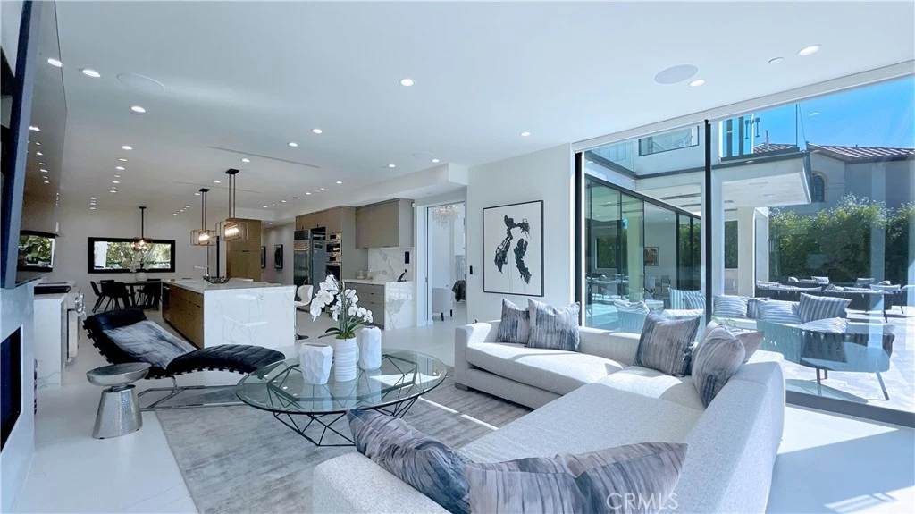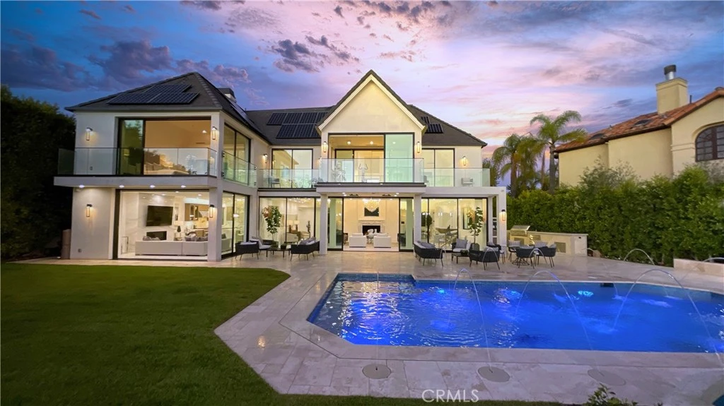Nestled at a cul-de-sac in Pacific Palisades, this modern gated home has been comprehensively transformed and expanded. The thoughtfully designed layout features six bedrooms with sizable closets, 6.5 bathrooms, a spacious office, gym room, and a striking great room with majestic double-height ceilings. The living space is further has a 50-foot wide of floor-to-ceiling sliding glass doors, viewing the backyard. The gourmet kitchen is equipped with a dining area, grand center island, and top rated appliances, seamlessly merging with a spacious family room that also boasts sliding glass doors. Master bedroom offer spectacular ocean and mountain views. The master retreat includes a fireplace, spa-inspired bathroom, and a meticulously designed walk-in closet. The outdoor oasis ensures privacy and tranquility, featuring a covered heated patio, outdoor speakers, al fresco kitchen, expansive pool, spa, lit bronze Four Season fountain, fire pit area, and beautiful trees. Upgrades include a new solar system, electric car charger, Lutron lighting, HVAC, pre-wired AV systems, and a security system, all enhanced by modern technology. This splendid residence provides direct access to hiking trails. A remarkable dwelling in the highly sought-after Highland Palisades community.