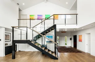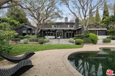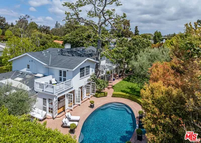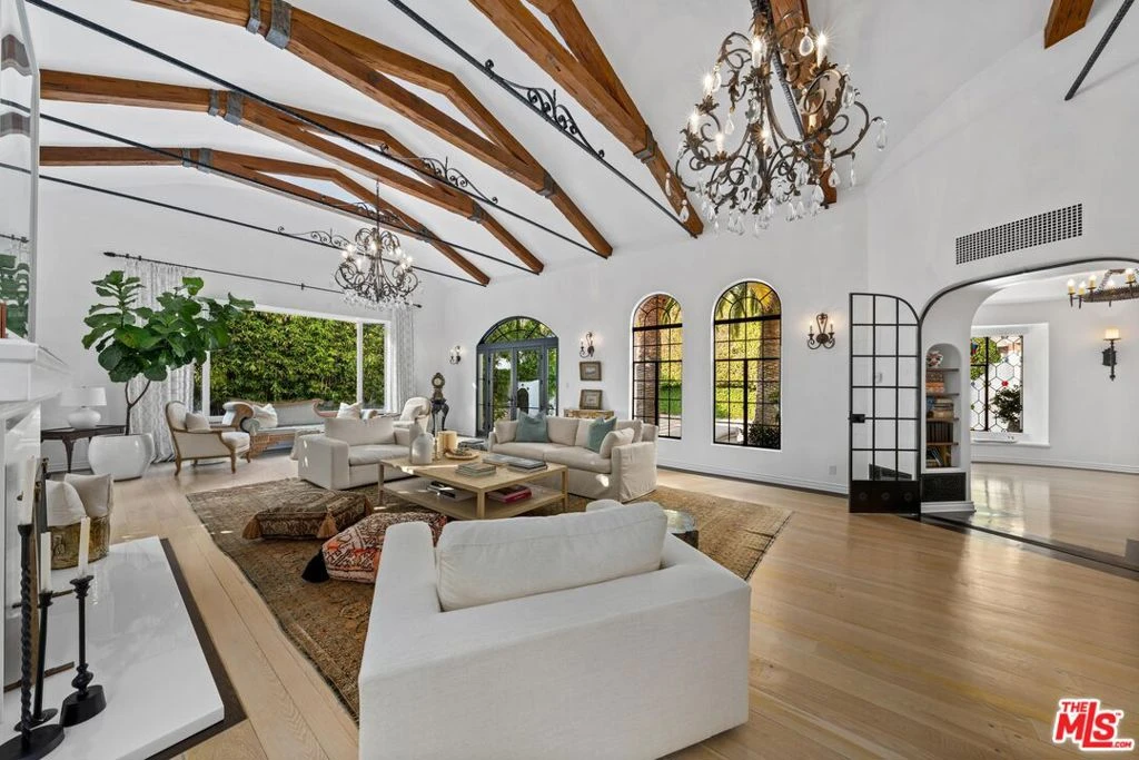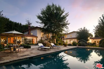 Nestled in the Pacific Palisades' most coveted area, the Riviera, stands this stunning iconic Hollywood Spanish celebrity compound. Completely remodeled/restored and updated to perfection, this residence exemplifies Hollywood 20's opulence and architectural detail combined with the latest modern luxuries. Securely tucked behind gates and tall hedges, the estate features a grand 10 car motor court flanked by two majestic Canary Island date palms perfectly framing the front entrance. Every detail throughout the home has been thoughtfully curated, from ironwork and arched casement windows to wood ceiling beams, stained glass, and handcrafted tile work. A grand foyer, featuring a custom fountain beside the stairwell, warmly welcomes you into the main living spaces. The grand formal living room boasts vaulted ceilings, oversized period windows, anchored by an oversized fireplace, seamlessly flowing into the character-rich dining room adorned with stained glass accents and wainscoting. The kitchen is a true masterpiece, conveniently accessible from the dining room and foyer. It features two Miele refrigerators, a top-of-the-line Wolf range + oven, marble countertops, and an inviting breakfast room that opens onto the patio. Entertaining is effortless with a movie/screening room featuring an ultra HD projector, adjacent to two guest bedrooms on the main floor. Upstairs, you'll find three additional bedrooms and a well-appointed office. The office, unique with its curved architecture and stained glass windows, is easily accessible from the primary suite. The primary suite is a sanctuary with vaulted ceilings, a fireplace, a balcony overlooking the lush landscaping, an adjoining fitness center, and a resort-style bathroom. Highlights include marble countertops, a freestanding tub, designer sconces, and two ultra luxurious walk-in closets. Outside, multiple spaces for relaxation and entertaining await, including a flat grassy area, a large pool, and a jacuzzi, all surrounded by mature, manicured hedges for ultimate privacy. This Spanish-style estate, blending timeless Old Hollywood charm with modern luxury, offers a rare opportunity to own a piece of the Riviera's prestigious history, perfect for those seeking a lifestyle of functionality and privacy.