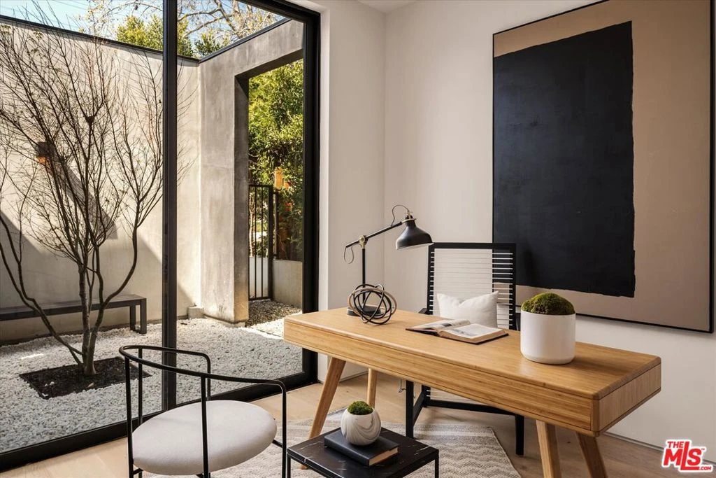 Stunning newly constructed property in Pacific Palisades, which boasts a breathtaking view of Portrero Canyon. Upon entering, you'll be welcomed by private courtyard which leads into the formal living room that's generously illuminated by natural light that cascades through the vast glass windows throughout the house. Also located at the front of the home is the office or, if you prefer, a fifth bedroom. The open dining and living areas are thoughtfully placed to accommodate large gatherings. The chef's kitchen is a dream come true, equipped with top-of-the-line appliances, dual ovens, a walk-in pantry, top-of-the-line finishes, and a breakfast bar. The kitchen effortlessly flows into the family room which has expansive sliding glass doors that disappear to create the perfect indoor/outdoor living space. The lower level of the house features a spacious bonus room, complete with a bar, a gym, an enclosed home theater, and an en-suite guest bedroom. The laundry room is also conveniently located on this level. On the upper floors of the home, you'll find two sizable en-suite guest bedrooms with ample closet space. The primary suite is exquisite, with a dedicated balcony that offers a spectacular view of Portrero Canyon and beyond. The primary bath features two walk-in closets, dual sinks, and a separate soaking tub and steam shower. Step outside to the vast grassy area that leads to the pool and spa. A covered outdoor patio and built-in BBQ make it the perfect space to entertain. Additional perks include an elevator, rooftop access with a patio that offers a stunning view of the ocean, Potrero Canyon, and beautiful De Pauw, and a 2-car garage with direct access into the home. Ideally located just moments away from Palisades Village, which offers a plethora of options, including destination restaurants, farmer's market, and much more!