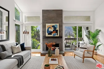 Perched in the coveted Highlands enclave of Pacific Palisades, this exquisitely updated townhome offers a refined blend of sophisticated design, modern comfort, and breathtaking canyon vistas.Sunlight pours through soaring ceilings and a dramatic skylight, illuminating the home's open-concept living spaces. The living room centers around a warm fireplace and flows effortlessly to a serene patio with new tile flooringan inviting setting for morning coffee or sunset entertaining surrounded by a beautiful botanical paradise.The state-of-the-art chef's kitchen is both striking and functional, featuring Brazilian granite countertops, rare Anegre African wood cabinetry, and premium appliances including a Viking six-burner range with griddle and KitchenAid built-in refrigerator. Custom pull-out cabinetry, a stylish wet bar, and tranquil mountain views from the kitchen complete this thoughtfully designed culinary space.Upstairs, a glass-railed staircase leads beneath a stunning skylight to the private bedroom level. The primary suite is a tranquil retreat with vaulted ceilings, a spacious cedar-lined walk-in closet, and a newly renovated spa-inspired bathroom appointed with Brizo fixtures, a Toto Washlet bidet, custom cabinetry, dual sinks, vanity table, LED backlit mirror, and a walk-in shower with dual shower heads. A private balcony captures sweeping canyon views.A secondary upstairs bedroom features its own en-suite bathroom, while an additional bedroom and full bath on the main level offer flexibility for guests, office space, or multigenerational living.Additional features include French limestone flooring, exotic hardwoods, central HVAC, designer lighting, a full-house water filtration system, new gas water heater, and a direct-access two-car garage with extensive custom storage.Residents enjoy resort-style amenities including a pool, spa, sauna, and fitness center overlooking the surrounding canyon landscape.Just moments from the boutiques, dining, and community atmosphere of Palisades Village, as well as nearby hiking trails and the beach, this home offers an exceptional blend of luxury, tranquility, and coastal lifestyle.