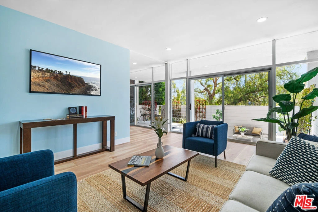 This Condo has been completely redone throughout, with all brand new appliances, new flooring, new quartz countertops, newly painted, custom cabinets in kitchen and bath, with 9 foot ceilings. Cool ocean breezes. Open space with a wall of glass. Ample closet space, European style washer dryer in unit. Private large step down patio, with your own landscaped garden. Close to beach, hiking trails, restaurant, pharmacy, cleaners, salon, Palisades Village with all it's boutiques ,shops and restaurants. Building has a community pool and small gym. HOA includes water and cable tv. Public records shows unit as a 2 bedroom, unit is a 1 bedroom.