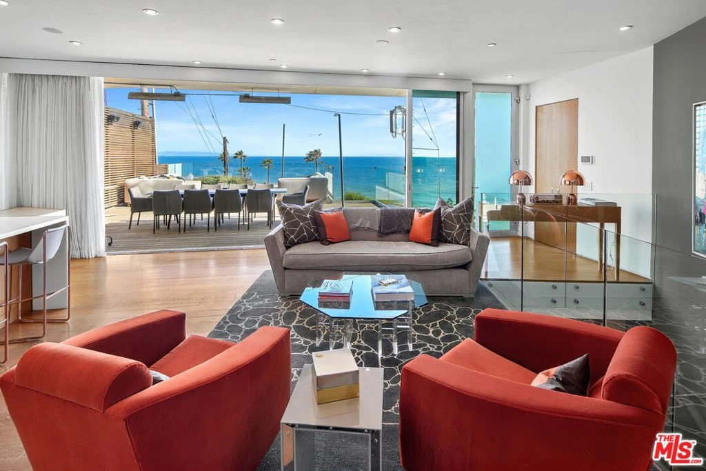 By the award-winning PAA Studio, this architectural offers explosive panoramic ocean & coastline views from nearly every room. Upon entry, guests are greeted by an open great room and modern chef's kitchen featuring Miele & Sub-Zero appliances, stone counters, and a large center island. Floor- to-ceiling glass doors give way to an enormous deck/lounge overlooking the glorious Santa Monica Bay. Organic elements such as wood ceilings, White Oak hardwood floors & a unique geometric staircase promote warmth within a contemporary design. Up the floating stairs or elevator, the unrivaled indoor-outdoor master suite occupies the entire top level; featuring pocket glass doors that run the length of the entire private balcony, an incredible walk-in closet & a spa-like bath with a huge soaking tub & oversized shower. The lower level features a media & billiards room. This architectural tour de force defines sophisticated California living with unparalleled commanding views.