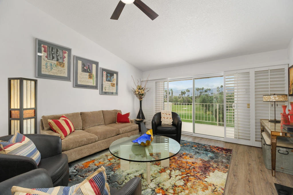 Welcome to one of the finest 2-bedroom upper-unit condos in prestigious Desert Falls Country Club! Perfectly positioned near the 11th hole, this gem offers stunning greenbelt views stretching down the fairway. Located on Desert Falls Circle, it sits in a highly sought-after, quiet, interior location--just a short walk to the Clubhouse, Restaurant, Fitness Center, Pools, and Tennis & Pickleball Courts. VIEWS off the Living Room & Master Bedroom as you sit out on your balcony is perfect for taking in breathtaking sunsets. Offering a spacious open layout with bedrooms on opposite ends for privacy, abundant natural light, tile flooring throughout, cozy fireplace in the living room, granite kitchen counters, stainless steel appliances, and remodeled walk in Showers in both bathrooms, this home provides an ideal opportunity to experience your own desert oasis.HOA dues include all exterior, roof, fitness membership w/ tennis & famous pickle ball! Wi-fi, cable, 24 hr. security, and access to 30 plus pools. Youth to adult sports activities are available as well as a pro shop. Partake in casual meals and happy hour at the Desert Falls Grill Golf is on a pay as you play basis, or you may choose to purchase a membership here at Desert Falls Country Clubs Scottish Links, 18 hole Championship Golf Course which has been rated as one of the 10 top courses by the SCPGA and awarded a 4-Star rating from Golf Digests ''Best Places to Play''! Furnishings included per Seller's Inventory