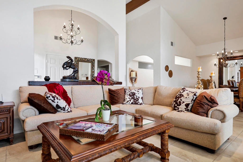 Stunning End-Unit Tucson Floorplan with Fairway ViewsThis large end-unit Tucson floorplan is perfectly perched on a gorgeous lot overlooking lush double fairways, bathed in warm morning sun. An expanded patio with awning creates the ideal setting for seamless indoor-outdoor entertaining.Inside, the home was tastefully updated approximately 10 years ago, opening the great room and featuring granite countertops that anchor the space beautifully. Elegant archways and a subtle Western architectural motif add character and visual interest throughout.With 2 bedrooms plus a den (currently set up with two queen beds as a third bedroom), and 3.5 baths, this 2,750 sq ft residence offers exceptional space and comfort for owners and guests alike.Located on a quiet street, the home is walking distance to the clubhouse and racquet center, and one of the community's 44 pools and spas is conveniently located directly across the street. Beautifully furnished and move-in ready, this is effortless desert living at its finest.