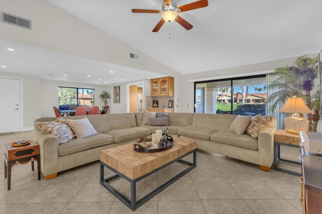 AVAILABLE JAN AND FEB 2025. BOOKED MARCH AND APRIL 2026. New flooring and repainted. 3 bedroom/3bath corner unit overlooks the golf course and putting green and is in move in ready condition with furnishings. This beautiful unit features neutral ceramic tile through the spacious great room with fireplace (bed being added to the third bedroom). Chaparral Country Club is a gated community located in the heart of Palm Desert. The Club offers a full service Restaurant, 8 lighted tennis courts, par 60 golf course, 21 pools and spa, bocce and pickle ball courts. Located only 2 miles away from El Paseo with unparalleled shopping and dining. Golf Course Membership is reasonable. Available to move in at the end of April 2025!
