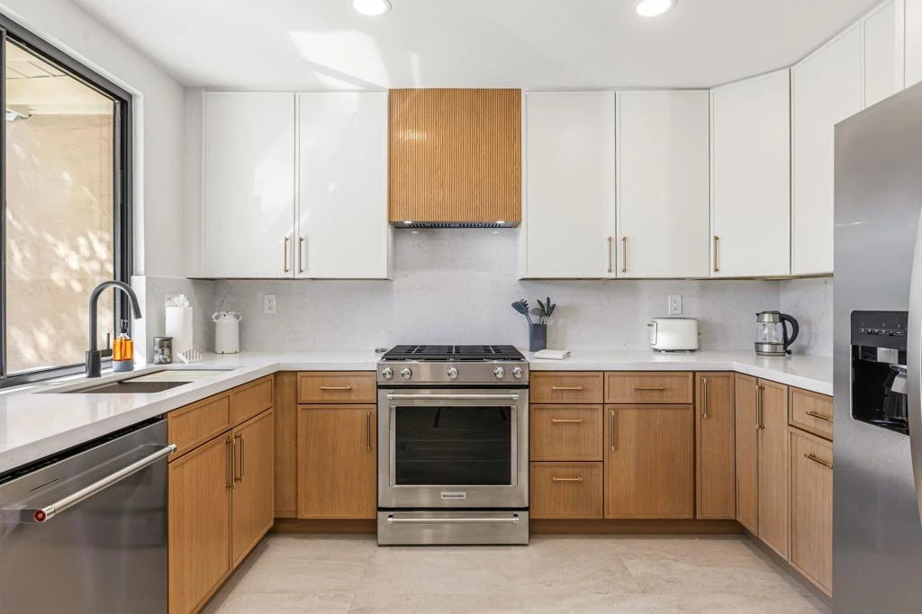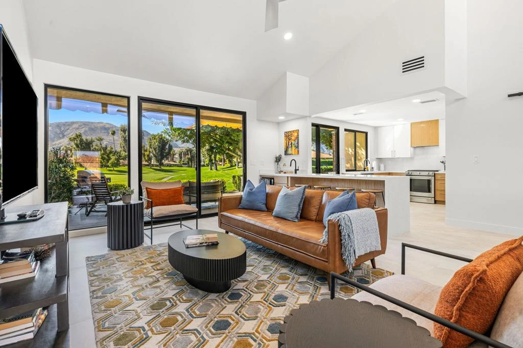 Light, bright, and airy, be one of the first to book this brand-newly renovated, single-story luxury rental home in Monterey Country Club. 5-star Airbnb Reviews. Fully turnkey FURNISHED, offered monthly, avail May-Sept $5500/mo. Inquire for seasonal pricing. Spacious 2 bedrooms + office (or 3rd sleeping area). The living room and patio captures PANORAMIC Southern mountain views, with organic modern design that balances sophistication, clean lines, and desert-inspired style. *SINGLE-STORY & Fully Renovated: Enjoy the ease of no stairs, BRAND NEW appliances, a fully RENOVATED kitchen, and two fully renovated bathrooms with walk-in showers. NO CARPET (all tile). *Beds, Master: CA King bed. Guest Room 1: Queen bed. Guest Room 2/Office: Twin Sleeper Sofa and Desk. *Club Amenities: Steps from TWO pools/spas (30+ total in the community!) and access to Monterey CC Clubhouse and dining. Guests also have access to Hosts's partnership Club at Palm Desert Resort, including 18 holes of golf, pickleball and tennis courts. *Monthly pricing varies by the month, inquire for longer stays.