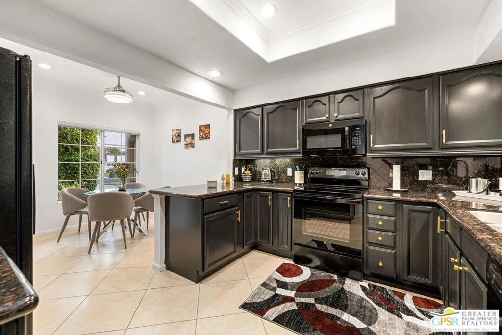 Escape to paradise in this lower-level, 3-bedroom, 2.5-bath condo with 1,814 sq. ft. of comfortable living space in the highly desirable Desert Falls Country Club. The updated kitchen features granite counters and a cozy breakfast nook, while the spacious living room offers a fireplace perfect for cool desert evenings. Tile flooring in the common areas and laminate in the bedrooms provide easy maintenance. The primary suite boasts a large bathroom with dual sinks, a soaking tub, walk-in shower, and a spacious walk-in closet. Step outside to the back patio equipped with a misting system and enjoy gorgeous pool views, creating the perfect setting for relaxation. Additional highlights include a 2-car garage with a large driveway for extra parking. The HOA covers cable, high-speed internet, and access to resort-style amenities such as golf, tennis, pickleball, a fitness center, and the clubhouse all without requiring a membership. Your guests and renters can also enjoy free access to these amenities. For added security, Desert Falls is a gated community patrolled 24/7 for peace of mind. This prime location is just minutes from El Paseo dining, Acrisure Arena for hockey games and live events, as well as the upcoming DSRT Surf wave pool, making it an even more attractive destination for vacationers. Whether you're seeking a second home, investment property, or a winter retreat, this stunning condo offers it all. Don't miss out on this exceptional opportunity!