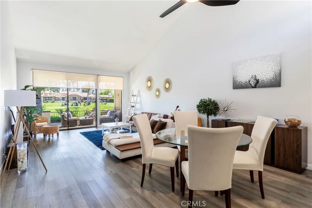 Welcome to this turn-key, fully furnished home located on the golf course of the gated Monterey Country Club. This single-level, 2 bed/2 bath condo features panoramic views of the golf course with a resort-like community pool located just around the corner. An ideal opportunity to own a versatile property that serves as a successful 5-star rental home or a gorgeous personal sanctuary. The home was completely remodeled in 2020 with luxury vinyl floors, gourmet kitchen and beautifully appointed bathrooms. The spacious living room and dining area features vaulted ceilings, clerestory windows, and an oversized sliding glass door to the patio that provides ample natural light and is great for indoor/outdoor living. The gorgeous kitchen features breakfast bar seating, included stainless steel appliances and charming views of the enclosed courtyard. Retreat to the large primary suite, which offers direct patio access overlooking the fairways, a private ensuite bathroom with dual sinks, and a spacious walk-in shower. The second bedroom features private slider access to the front courtyard and a separate full-size bathroom. Additional practical amenities include convenient in-unit laundry, a 2-car garage, brand new HVAC system, and professional duct cleaning. Enjoy the exclusive Monterey Country Club lifestyle with access to 27 holes of Championship golf, 19 tennis courts, pickleball, a fitness center and 37 community pools with spas. The HOA includes cable/streaming TV, internet, security, trash and maintenance. Ideally located just minutes from The El Paseo Shopping District, The Shops at Palm Desert, and Acrisure Arena.