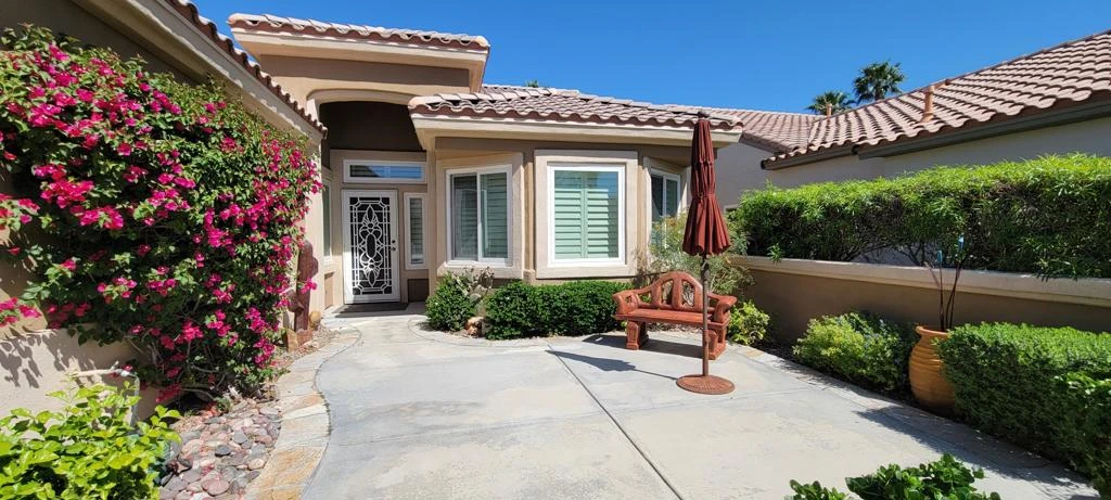 Welcome to resort style living in Sun City, Palm Desert. This 2 bedroom/2 bathroom + an additional room to be used as a bedroom/office/den/sewing or crafting area. Beautifully appointed throughout and lovingly cared for. You'll love the high ceilings, open floorplan and lushly landscaped backyard with several seating areas for your enjoyment, 2 car garage + golf cart garage, plantation shutters throughout and a fireplace for cozy evenings. When you feel like getting out and about, Sun City offers something for everyone. Residents have thirty-six holes on two magnificently maintained regulation championship golf courses located on property. These spectacular courses, designed by former PGA star Billy Casper, provide resort-style golf play and host several tournaments each year. Additionally, there are 80+ clubs and social groups and a large selection of recreational, athletic, educational, entertainment and social activities for you to enjoy and get to know your neighbors along with 3 clubhouses, 3 restaurants and even their own postal center! There are also educational opportunities and entertainment from plays and musicals to star-studded shows, concerts and guest speakers. Along with golf, there are 2 fitness facilities and 5 swimming pools, 20 paddle courts, 8 bocce courts, Zumba, Pilates, softball field, stocked fishing lake (catch and release), driving range, chipping and putting practice areas, bike and jogging paths and for your furry family members - 2 fenced dog parks. Sun City is recognized as the best active adult community in the valley. Come by, see this gorgeous home and check out the beauty that is Sun City, Palm Desert.