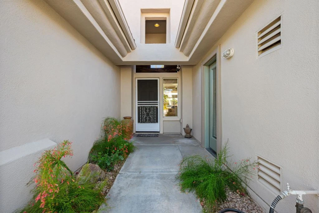 Welcome to Sun City Palm Desert - resort-style living in a vibrant 55+ Del Webb community! This beautifully maintained and TURNKEY-FURNISHED Opal floor plan (small exclusions list) offers 2 bedrooms, 2 baths, and an open layout with 10-ft ceilings, skylights, and great bedroom separation for privacy. The updated kitchen with Corian counters and tile backsplash opens to a spacious great room and breakfast nook--ideal for entertaining. A formal dining area adds flexibility, while the large covered patio offers a perfect outdoor retreat. The primary suite features a BAY WINDOW, walk-in closet, spacious bath, and skylight for abundant natural light. Additional highlights include ceiling fans, indoor laundry, ample storage, and a 2-car garage with extra space for workbench and storage or golf cart space. Low HOA covers exterior maintenance, cable TV, security, pest control, and more. Enjoy access to clubhouses, fitness centers, restaurants, two 18-hole golf courses, and endless social clubs. Perfect for seasonal or full-time desert living!