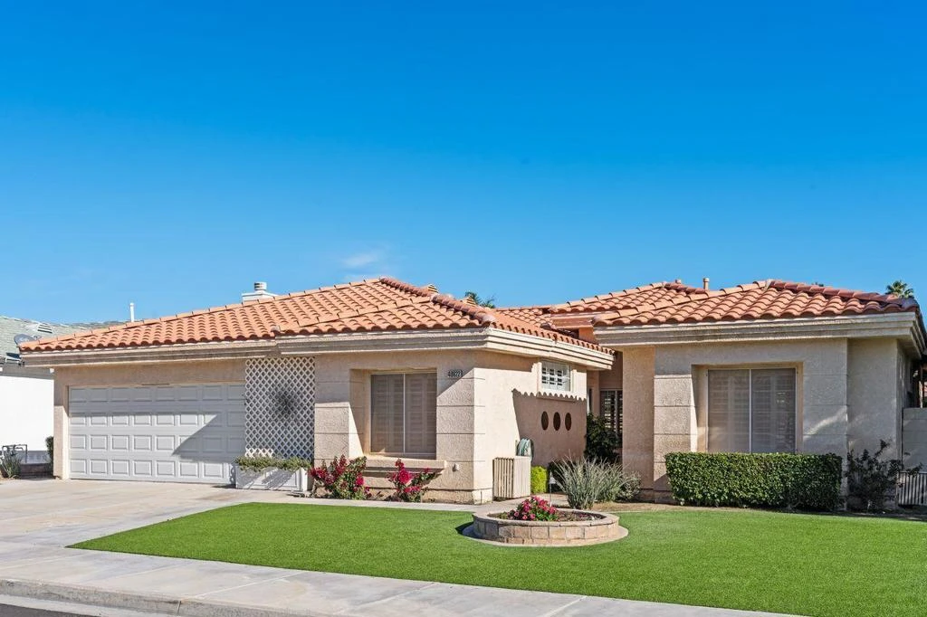 This beautifully designed home, in the heart of Palm Desert, offers approximately 2,300 sq. ft. of comfortable living space and features four spacious bedrooms and three well-appointed bathrooms. Located on a quiet cul-de-sac with no monthly HOA, the home includes a welcoming primary suite with a large walk-in closet and private en-suite bath, while the additional bedrooms provide generous space for family, guests, or a home office. Custom skylights fill the interior with natural light, complemented by beautiful wood plantation shutters throughout. A thoughtful floor plan creates an easy, natural flow, enhanced by a wet bar with refrigerator for entertaining and a natural gas, custom-tiled fireplace in the great room, making everyday living both relaxed and enjoyable.Step outside to your own private backyard retreat, complete with a sparkling pool, relaxing jacuzzi, outdoor shower, and natural gas BBQa"perfect for soaking up sunny days and unwinding on tranquil desert evenings. The full front yard features low-maintenance artificial turf, adding to the home's convenience and curb appeal. Ideally situated in a prime central Palm Desert location, minutes from the shops, restaurants & entertainment of El Paseo and from Eisenhower Medical Center, offering an exceptional blend of comfort, convenience, and desert lifestyle living.