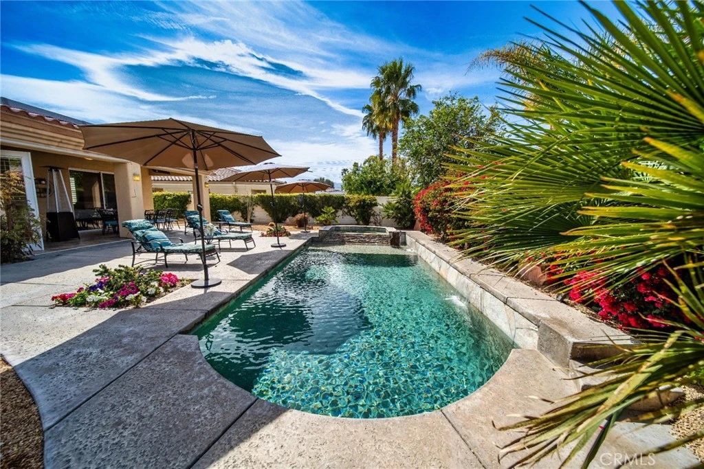 RATES VARY BY MONTH! Indulge in the ultimate vacation experience at 40879 Sandpiper Court, a hidden gem nestled in Palm Desert, California. This exquisite single-story home awaits you in a peaceful cul-de-sac, offering 4 bedrooms, 4 bathrooms, and over 2,990 square feet of pure luxury. Step inside and be captivated by the inviting ambiance of the spacious living room. With vaulted ceilings, a cozy fireplace, and an abundance of natural light pouring through large windows, this is the perfect space to relax and unwind. The open-concept design seamlessly connects the living room to the dining area and a modern kitchen boasting granite counter tops and ample cabinet space. Retreat to the serene primary bedroom suite, featuring a sizable walk-in closet and an en suite bathroom with dual sinks, a soaking tub, and a separate shower. Two additional well-appointed bedrooms with ensuite updated bathrooms, while the fourth bedroom offers versatility with full-sized bunk beds and a convenient desk area. Outside, a private oasis awaits you. The backyard beckons with a covered patio, lush landscaping, and a sparkling pool and spa, ideal for cooling off on warm days or indulging in evening relaxation. The special waterfall feature and cozy fire pit add a touch of tranquility and warmth to your outdoor experience. With a 2-car attached garage and a laundry room, convenience is at your fingertips. Located in the desirable Palm Desert neighborhood, this stunning property places you just moments away from the renowned shopping, dining, and entertainment options of El Paseo. Whether you seek relaxation or exploration, this vacation retreat is perfectly positioned to cater to your every desire. Experience the epitome of Palm Desert living at 40879 Sandpiper Court. This exceptional property is available year-round, with rates varying per month. Don't miss the opportunity to create unforgettable memories in this luxurious getaway. Rates will vary by month. The price listed is for the lowest month of the year.