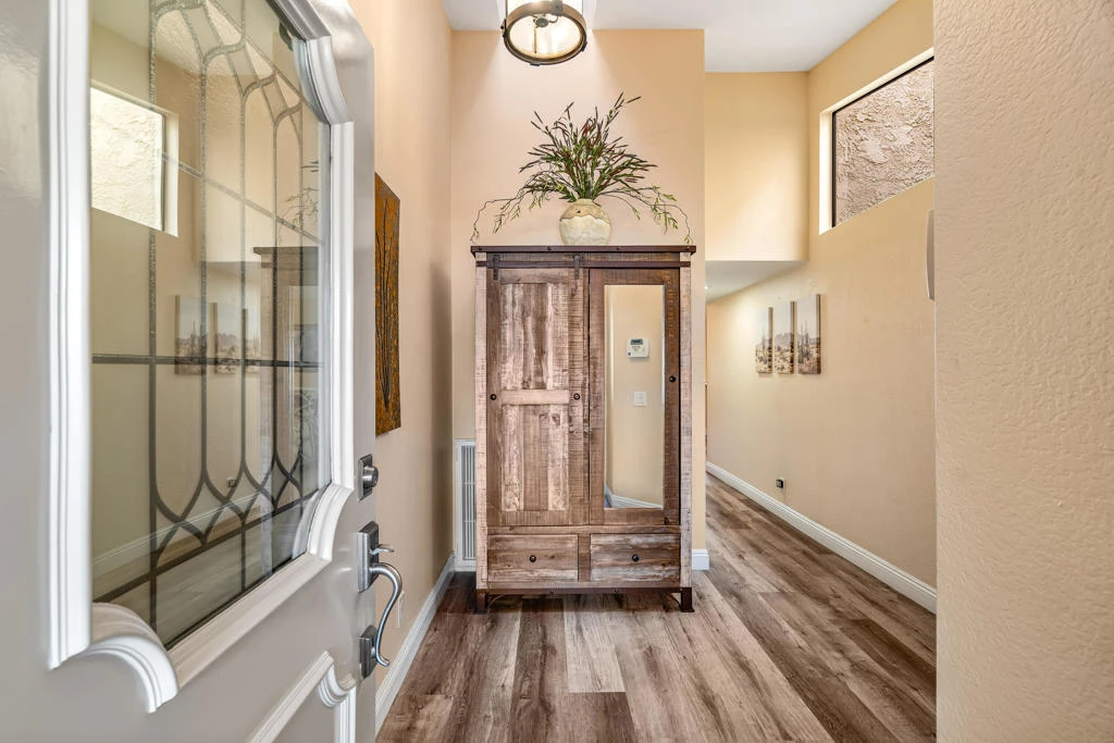 HUGE PRICE REDUCTION!!! SELLER SAYS SELL NOW - RIGHT NOW!Step into your dream home! This beautifully renovated condo offers modern luxury and comfort in every corner. The updated kitchen features refreshed cabinets, new appliances, and granite slab surfaces, perfect for entertaining. Personal design touches include electric blinds in the living room, recessed LED lighting in living room & kitchen, custom sculpted fireplace, and extra storage added in in the powder room.The open floor plan connects seamlessly to the spacious living area, where guests can relax and enjoy scenic views of the golf course.With 1,892 sq. ft. of living space, with additional sitting and office space in the upstairs master this home boasts two generously-sized bedrooms, a large 'flex' room that can be used as a den/bedroom/office/dining room, new flooring throughout, and a formal dining room with an adjacent cozy sitting area--perfect for winding down with your favorite beverage. The rear patio features a French drain and refurbished patio slab. New skylight brings in extra natural light and more custom cabinetry added in the garage.Located in the exclusive Woodhaven Country Club, residents can enjoy an 18-hole golf course, a full clubhouse, dining options, a fitness center, tennis and pickleball courts, and four pools and spas--heated during the winter months.Plus, with shopping and dining just a short walk away, this centrally located desert paradise offers the perfect blend of convenience and resort-style living. Your dream home awaits!