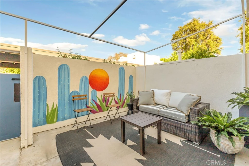 Discover the charm of Palm Desert in this beautifully renovated townhome, ideally located just minutes from the renowned shops and restaurants of El Paseo. Tucked behind a private gate, a welcoming front porch and sun deck set the tone for relaxed desert living—perfect for morning coffee or unwinding in the warm evening air. Inside, the thoughtfully redesigned interior blends style and functionality. The newly renovated galley kitchen features quartz countertops, a gas range, dishwasher, and refrigerator, creating a clean and modern workspace. The open-concept living and dining floorplan flows effortlessly to a private back patio framed by lush greenbelts, offering a peaceful outdoor retreat. Brand-new luxury vinyl flooring runs throughout the main level, complemented by a custom wood-paneled accent wall that adds warmth and character. The fully remodeled powder bath showcases a white oak vanity, quartz countertops, and elevated brushed brass lighting and fixtures for a refined designer touch. Upstairs, two generously sized bedrooms offer comfort and privacy, complete with new carpet and plantation shutters. Both bathrooms have been tastefully updated with white oak cabinetry, quartz countertops, and matte black fixtures, blending timeless finishes with contemporary style. Located within the 120-home Mountainback community, this property includes two assigned covered carports—an uncommon and valuable feature in the area. Residents enjoy access to resort-style amenities including pools, spa, tennis, and pickleball courts, all with low HOA fees. Just moments from El Paseo’s premier shopping and dining, as well as The Living Desert Zoo and Gardens and Civic Center Park’s expansive 70 acres of walking paths, public art, dog park, and rose garden, this home offers the perfect balance of convenience, recreation, and desert lifestyle. Don’t miss the opportunity to own a move-in ready townhome in one of Palm Desert’s most desirable locations.
