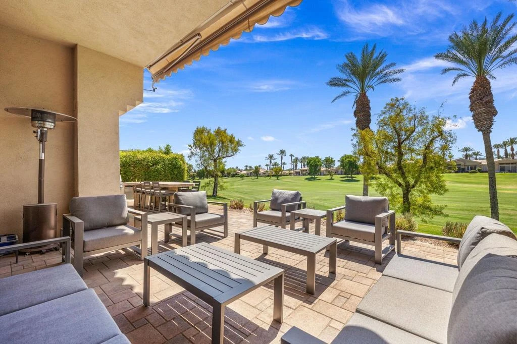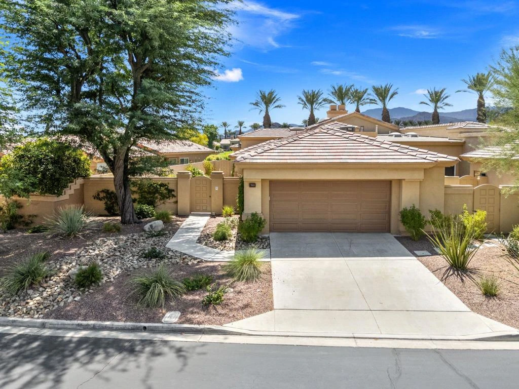 Welcome to this stunning Acacia 5 floor plan with provisional golf membership, completely remodeled from top to bottom and offering the best in modern desert living. Step inside to find all new luxury vinyl flooring throughout, a beautifully redesigned kitchen featuring granite countertops and brand-new appliances. The primary suite is a true retreat with a gorgeous walk-in shower, separate soaking tub, modern dual sinks and 2 mirrors with LED lighting. Each guest bedroom offers its own private ensuite bathroom, all fully updated with new showers, countertops, and fixtures--perfect for hosting family and friends in comfort. Outside, the front courtyard and back patio are both finished with elegant pavers, while the built-in BBQ and extended back patio create the ideal setting for entertaining. Enjoy spectacular southern mountain views overlooking the 7th hole of the Grove course, a picture-perfect backdrop for every desert evening. Let's not forget newer A/C systems, including garage AC, water heater, and epoxy garage floor. This home blends timeless style, comfort, and an unbeatable location--truly move-in ready and waiting for you! This home is being offered furnished with very few exclusions.