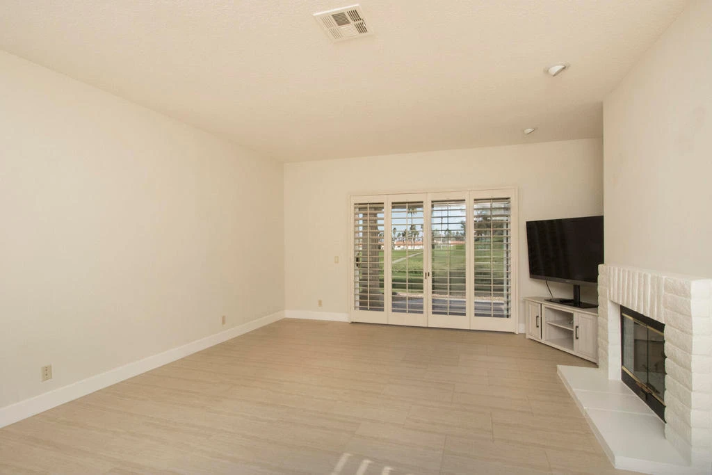 Perfectly positioned with double fairway and panoramic mountain views as the backdrop, this golf villa offers a front-row seat to the Desert lifestyle. The kitchen opens to the living area with gas fireplace and connects seamlessly to the outdoor patio, with the layout capturing the views.Recent updates include all-new flooring throughout, adding a fresh look. The kitchen is well-appointed with granite countertops, stainless appliances, and custom KraftMaid wood cabinetry, complemented by a cheerful breakfast nook ideal for relaxed mornings.The Den has been thoughtfully converted into a third bedroom with a closet, providing flexibility for guests, a home office, or seasonal use. Whether you're escaping for a weekend or settling in for the season, this villa is designed for easy living and effortless enjoyment of the Desert Lifestyle.