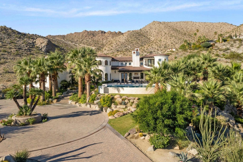 Extraordinary Desert Luxury Lifestyle Living | Privately gated on 2.39 acres in Cahuilla Hills, this custom estate offers the ultimate in luxury desert lifestyle living, amazing views and starry nights. Not a dime was spared building this custom design home. Incredible Quality Craftsmanship only begins to define this 6,254 SF truly exceptional home, offering only the finest desert lifestyle living, all just 10-minutes from downtown El Paseo Drive, shopping and dining, minutes from well-known hiking trails, golf, tennis... you name it! Relaxed luxury both formal and informal spaces, all have direct patio access. Four hand carved stone fireplaces, hand hewn beams-trusses-ceilings-wood floors, forged iron railings and rare natural stone surfaces throughout. Gourmet cooks' kitchen with huge island, wolf range/oven, dual Subzero fridge/freezers, warming drawers, dual dishwashers, wine storage, wet-bar, ice maker and cold beverage drawers. Private and spacious view master suite with fireplace, lanai and incredible bath; dual water-closets-sinks-walk-in closets, view soaking tub and unique round shower. Enjoy relaxing evenings, soaking in your private canyon view spa, entertaining patio kitchen area or overlooking your infinity pool and some of the best down valley views in the desert. All bedroom suites are separated offering utmost privacy, the three guest suites offer complete luxury, incredible finishes and endless views. Seize the moment... You will LOVE this HOME.Designer Furnishings Available to Purchase.