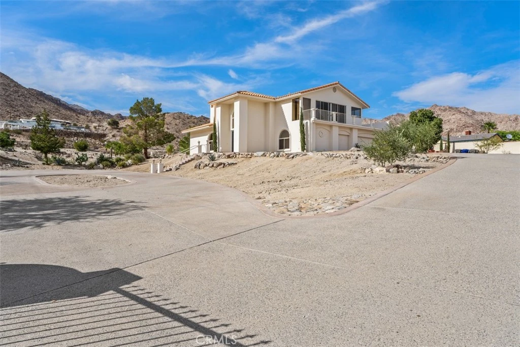 Rare Opportunity in Prestigious Cahuilla Hills! Nestled in one of the desert’s most exclusive enclaves, this impressive estate sits proudly on a sprawling one-acre corner lot (43,560 sq. ft.) offering unmatched privacy, space, and breathtaking mountain vistas. A gated circular driveway and elegant staircase entry create a dramatic first impression, while a second driveway provides easy access to the attached three-car garage. The expansive grounds are thoughtfully designed with lush desert landscaping, olive trees, cypress, retaining wall and irrigation system, blending natural beauty with ease of maintenance. Step through the double-door entry into a formal entry with a Grand Chandelier; leading to the living room filled with natural light, featuring vaulted ceilings, a cozy fireplace, and large windows framing serene mountain views. The adjoining formal dining room offers an ideal setting for hosting gatherings. The spacious kitchen includes a breakfast bar and seamlessly opens to the inviting family room, complete with two sets of sliding glass doors leading to the wrap-around covered patio - perfect for entertaining or enjoying the desert sunsets. A main-level bedroom and full bath provide convenience and flexibility for guests or multi-generational living. Upstairs, the primary suite is a true retreat, boasting a private balcony with panoramic mountain views, a large ensuite bath, and ample closet space. The upper level also features a third bedroom with full bath and an impressive game room with wet bar, 1/2 bath and recently renovated wrap-around deck offering even more sweeping views of the mountains and valley. BONUS ROOM CAN BE CONVERTED TO A 4TH BEDROOM AND/OR 2ND PRIMARY. Newer lower level A/C and brand new upper level A/C, new ducts, new roofing over back patio verandas, new carpet in primary and main floor bedrooms, new interior paint and new electric water heater. The expansive lot offers endless potential - add a pool, spa, Casita, putting green, and/or outdoor kitchen to create your ultimate desert sanctuary. Located just minutes from hiking trails, the world class Shops at El Paseo, fine dining and the renowned Bighorn Golf Club, this property presents an unparalleled opportunity to craft the home of your dreams in one of Palm Desert’s most coveted neighborhoods.