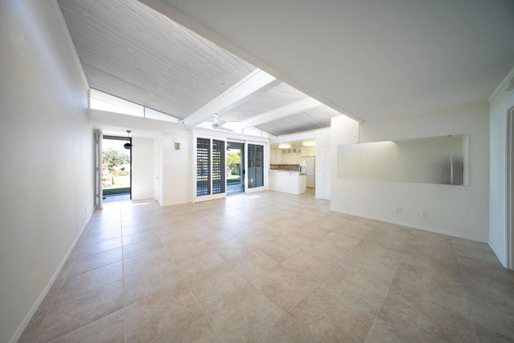 SUPER VALUE ALERT- PRICE JUST REDUCED TO MAJOR BARGAIN PRICING! Rare Mid-Century Modern on the golf course with LOW HOA in the heart of Palm Desert.A true mid-century modern treasure just blocks from El Paseo--Palm Desert, CA famed shopping, dining, and art district. Set on the lush fairways of the historic Shadow Mountain Golf Course, this move-in ready condo offers mountain, golf course, lake and pool views in one of the most desirable locations in the desert.From the moment you step inside, you'll appreciate the architectural integrity of the era with dramatic vaulted wood ceilings, clerestory windows, and clean modern lines. The home is thoughtfully updated for today's comfort, featuring a remodeled kitchen with soft-close cabinetry, tile flooring throughout, custom plantation shutters, new dual-pane sliding glass doors, tankless water heater, and fresh interior paint. Enjoy relaxing on your patio with breathtaking views, or take a dip in the community pool framed by panoramic lake, golf course and mountain views, plus mature landscaping and fruit trees . This low-HOA community is ideal for full-time living, a winter getaway, or a rental income opportunity. The Shadow Mountain Golf course has a newly renovated clubhouse offering social activities and events and public golf course for you to check out and enjoy.This is mid-century living at its finest--in one of Palm Desert's most vibrant and walkable neighborhoods.