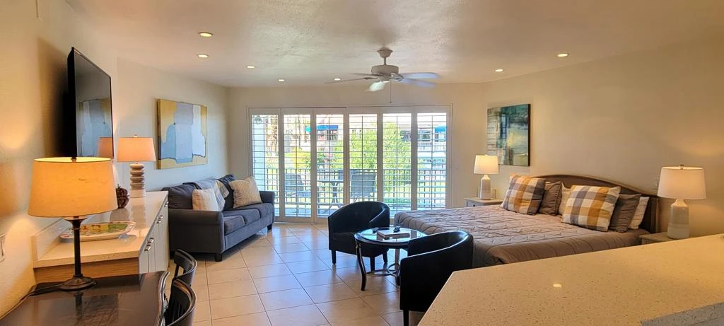 Welcome to Shadow Mountain Resort where sun, fun and relaxation await! This particular unit is off of the historic figure 8 main pool at the north end upstairs and is approximately 135 sf larger than most units in that location. The mountain, main pool and tennis court views are amazing!!!! Beautifully furnished and has done quite well in the Shadow Mountain Rental Program (Shadow Mountain allows short term rentals). ALL UTILITIES including cable and internet are INCLUDED in the QUARTERLY HOA fees of $2,227. Shadow Mountain is known for tennis and so much more.....blocks away from El Paseo where you can enjoy morning coffee, fabulous restaurants and shopping galore! Shadow Mountain Golf and Birdy Bar & Grill are right next door to the resort (no affiliation with the resort). This is a unique property...so come see it for yourself and discover what a gem this truly is!*Main pool, tennis, pickleball, padel, pro shop and fitness center require annual membership (see attachment). There are 3 HOA pools/spas throughout the development that do not require membership.