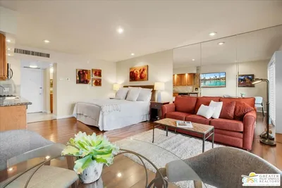 Welcome to Palm Desert's vacation short term or year round Oasis! This unit is one of the nicest remodels in Shadow Mountain, recently renovated kitchen with new cabinets, appliances, wallpaper accents, updated bathroom, flooring and carpet, bedding and accessories. This unit Feels light bright and open, step outside to your Private balcony ideal for entertaining and relaxing with peek a boo mountain views. Shadow Mountain offers you 3 HOA pools and hot tubs, for a separate membership at the resort they offer a fitness center, large pool and state of the art tennis facility. Owners HOA includes All utilities paid including electricity, cable TC and internet. All exterior maintenance and building insurance. OFFERED TURNKEY FURNISHED. This is an ideal location, you are close to El Paseo shopping district, the Living desert, fine dining and entertainment! Owner has rental history to provide.