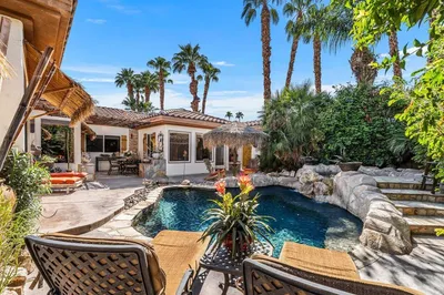 Discover your desert oasis at 74115 Portola Pointe Ln Nestled in the heart of Palm Desert, this beautiful 6-bedroom, 4-bathroom home is a desert dream waiting for your personal touch. Spanning 3,416 square feet, this spacious residence offers an inviting open floor plan. The home has an attached casita that has it's own direct entrance, direct access bathroom and walk in shower. Upon entering the home, you are greeted by an expansive living room that flows seamlessly into the dining area and kitchen. The kitchen boasts elegant granite countertops and is open to a great room with an abundance of natural light. The primary suite is a true retreat, offering direct access to the private patio. The primary suite extends into the luxurious primary bathroom, complete with a full size walk in shower and a soaking tub. The backyard is an entertainer's delight, featuring a stunning mountain views. It’s the perfect setting for enjoying serene desert nights. This centrally located property provides the ideal lifestyle for a full-time resident, a second-home owner, or a savvy vacation rental investor. Enjoy easy access to local restaurants, shopping, and schools, making it a convenient and desirable location.