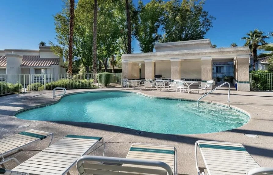 Beautifully maintained single-story end-unit condo in a gated Palm Desert community. This spacious home offers a functional layout ideal for full-time, seasonal, or investment use. Features include abundant closet space, two private outdoor balconies (one generously sized and perfect for relaxing), and convenient parking directly in front of the unit.Low HOA of $465/month includes gated access, landscaped greenbelts, walking paths, and two community pools and spas, with one just steps away. Quiet, private setting with easy access to Palm Desert Golf Center, El Paseo shopping and dining, Indian Wells Tennis Garden, The River at Rancho Mirage, casinos, and public golf courses. Great opportunity in a prime central location.