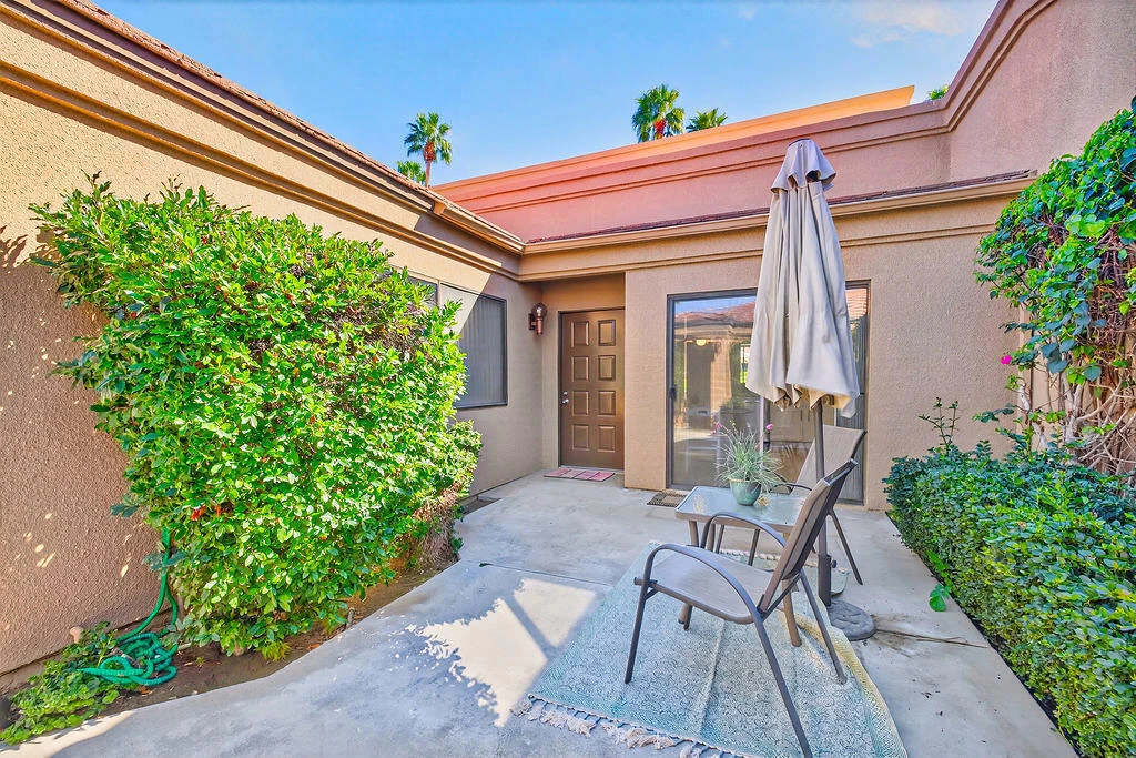 Welcome to this beautiful south-facing Jacaranda in sought-after Palm Valley Country Club, where desert living feels effortless. With a remodeled kitchen, new flooring, and a light, open layout, this home is truly move-in ready, just bring your personal touches and start enjoying the lifestyle. Featuring two bedrooms and two baths, the open-concept design creates a comfortable flow perfect for relaxing or entertaining. Enjoy morning coffee in the private courtyard or unwind on the fairway patio surrounded by mountain views, swaying palm trees, and a peaceful, serene setting that captures the beauty of the desert. The garage has Epoxy flooring too.Whether you're looking for a seasonal retreat or a full-time home, this property offers the perfect blend of comfort, style, and the easy indoor-outdoor living Palm Valley is known for. Palm Valley Country Club offers true resort-style living with two golf courses, one championship course and one challenge course. A state-of-the-art fitness center, restaurants, and a warm, welcoming community. Come experience relaxed desert living at its finest Come experience the sunshine, the views, and the lifestyle waiting for you here. ☀️🌴