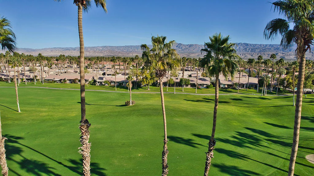 Best Value on the Championship Course - Priced to Sell. A prime piece of property this condo is ready to be re-imagined to suit your vision. While being well maintained and is very clean much of the unit retains its original classic character. Several key components have been updated; HVAC, water heater, garage door & opener, few appliances, washer/dryer are newer. All have had little usage for added peace of mind & comfort. Ideally located on the Championship golf course holes #14 & 15, Par 5's, the property enjoys elevated, double-wide fairway exposure with expansive golf & mountain views.Cottonwood plan 1650sf., end unit features 3 bedrooms & 2 bathrooms, a dedicated laundry room, Kitchen with golf course views, living area with Views including a Fireplace. Outdoor living is highlighted by the golf course patio perfectly positioned to capture double-wide sweeping fairway & mountain vistas. The prime setting, expansive mountain views, short-term rentals permitted, add meaningful flexibility and income potential for investors while still appealing to full-time or seasonal owners. Come join the ''lifestyle'' at one of the Desert's most sought after Country Clubs. The activities are unlimited including 2 amazing golf courses designed by Ted Robinson, multiple tennis & pickle ball courts, athletic club, book club, card room, restaurants, hair salon & more. One of the friendliest Club's in the Desert.Furnished with a small exclusion list, move-in ready!