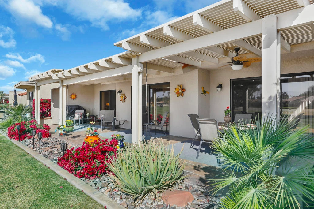 BEST INVESTMENT OPPORTUNITY FOR YOU TO ENJOY OR ATTRACT SEASONAL RENTERS.SWEEPING SW GOLF COURSE AND MOUNTAIN VIEWS, GORGEOUS SUNSETS, INVITING EXTENDED PATIO. This Vintage floor plan with split bedrooms is in high demand. Updated kitchen and bathrooms, inside laundry. Neat as a Pin. Turnkey! Ideal to enjoy resort-like living, in a secure guard gated community offering fun events, plenty of sports: golf, tennis, pickle ball, bocce ball, biking, walking, plus 20 swimming pools, active clubhouse. Pet friendly. Short terms leases allowed. 3 BIG SREENS included. GREAT VALUE. A GREAT DEAL!