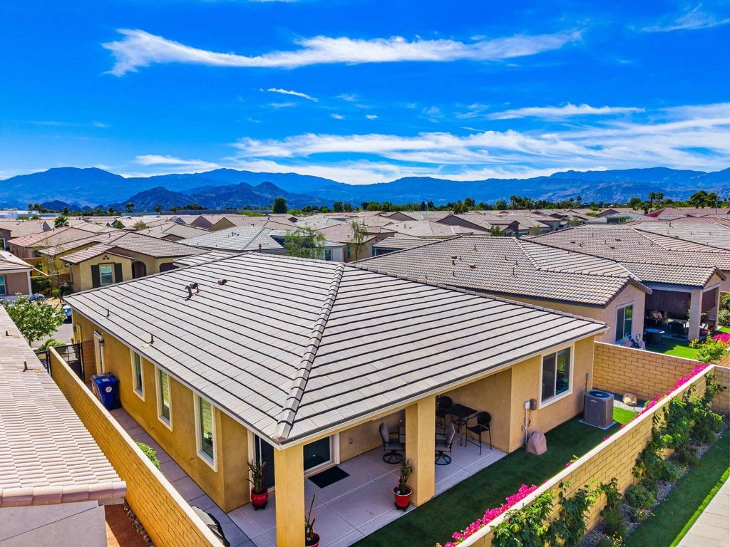 Welcome to high-end living in the gated 55+ community of Domani! This meticulously maintained home features an open-concept great room with custom shades and newly updated professional landscaping. Designed for maximum value, this property offers incredible monthly savings with IID electric service, leased solar, low HOA dues. The garage is a hobbyist's dream, fully equipped with a dedicated AC unit, epoxy flooring, and an insulated door. Additional premium upgrades include a whole-home water softener, indoor water filtration system, and rain gutters. Residents enjoy resort-style amenities including fitness center, pool, spa, dog park, and active pickleball and bocce ball courts.