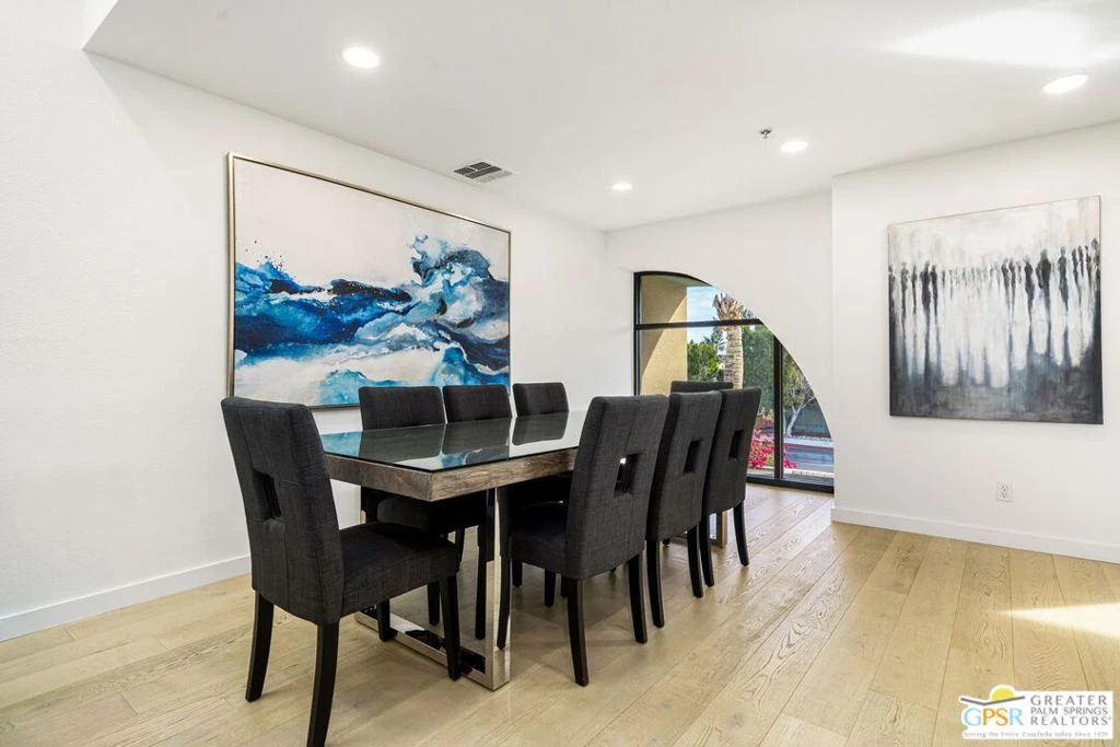 Enjoy modern desert living in this remodeled 2-bedroom, 2.5-bathroom condo townhouse where you can experience sophisticated living with mountain views in a prime location. Spanning two stories, this residence features brutalist architecture, glass railings with large glass windows and doors creating a seamless flow between indoor and outdoor living. The open-concept kitchen, dining, and living areas are bathed in natural light. Located just moments from downtown Palm Springs, the Uptown Design District, and world-class dining, this exclusive, secure, and secluded clothing-optional community offers a private retreat for those seeking a desert residence. This is a naturalist community, you have 1 assigned carport space and additional spaces for a fee upon request. Compared to newer developments such as Canyon View, Elan or Cody Place, E Stevens offers a more convenient location, prominent mountain views, brutalist architecture and the best price per square foot.