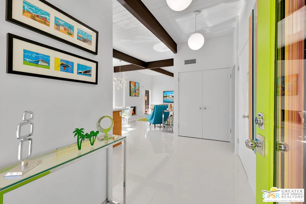 Believed to be one of the last Alexander-built butterfly roof homes constructed in Racquet Club Estates in 1962, this impeccably restored mid-century modern residence is a rare Palm Springs offering. Set on one of the largest lots in the neighborhood and enjoying coveted full southern exposure, the home delivers an exceptional modern desert lifestyle. Originally designed by Palmer & Krisel in the late 1950s, the iconic floor plan has been thoughtfully restored to honor its post-and-beam architecture, soaring clerestory windows, and clean modern lineswhile seamlessly adapting to today's living standards. The residence offers three bedrooms and two spa-inspired baths, complemented by a sleek European-style kitchen with quartz countertops and stainless steel appliances. Polished white porcelain floors and a striking block wall fireplace complete the refined interior aesthetic. Outdoors, the property truly shines. A sprawling resort-style pool and in-ground spa anchor the expansive grounds, joined by a bocce ball court, gazebo with fire pit, and meticulously designed desert landscaping. Wraparound mountain views and effortless indoor-outdoor flow create a setting ideal for both everyday living and entertaining. Recent upgrades include a newly coated foam roof, updated plumbing, refreshed pool systems, an on-demand water heater, and dual-pane windows throughout. Rare, iconic, and impeccably maintained, this is a home that must be experienced in person to be fully appreciated. Contact the listing agent to arrange a private showing.