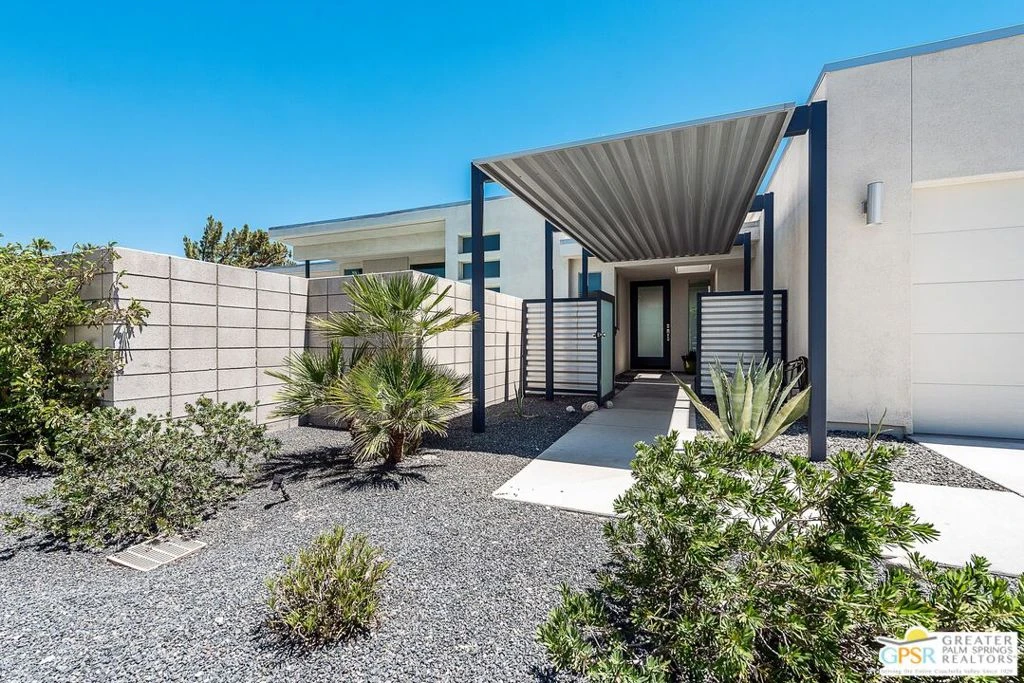 Panoramic mountain views, exceptional privacy, and one of the largest lots in Murano define this stunning modern 3-bedroom, 3-bath residence designed by renowned architect James Cioffi, AIA. Positioned on a premier private corner lot, this home captures sweeping, unobstructed views while offering a rare combination of space, design, and lifestyle with no HOA fees, an owned solar system, and energy-efficient construction resulting in impressively low utility costs. The outdoor experience is truly next level and a standout even within Murano. Fully turfed for low maintenance and year round enjoyment, the expansive grounds are designed for both entertaining and relaxation. Enjoy a resort style pool and spa with custom fire feature, a dedicated bocce court, private putting green, generous side yard for games and gatherings, and an oversized backyard with room to further enhance. Multiple outdoor living areas take full advantage of the views, creating a true desert retreat. Inside, the open concept floor plan is enhanced by vaulted ceilings, clerestory windows, concrete flooring, and walls of glass that flood the home with natural light while seamlessly blending indoor and outdoor living. The primary suite serves as a private retreat featuring direct access to the pool, stunning views, and a spacious bath with dual vanities, walk in shower, soaking tub, and walk in closet. Two additional bedrooms are thoughtfully separated for privacy, including a junior ensuite and a third bedroom with an adjacent full bath. Additional features include a dedicated laundry room with sink and an attached two car garage. Currently operating as a stable and profitable rental, this property also presents a compelling investment opportunity. Whether you're seeking a full time residence, seasonal escape, or income producing asset, this exceptional Murano home delivers on every level with design, privacy, outdoor living, and long term value. Offered Turn Key Fully Furnished.