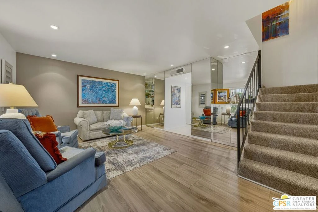 IMPROVED PRICE. Welcome to Hermosa Villas - an intimate, gated community in the heart of Palm Springs, just minutes from downtown shopping, dining, museums, and entertainment. With sweeping views of the San Jacinto Mountains, this sought-after enclave offers exceptional convenience and value. Unit 31 is a two-story townhome capturing mountain views from both levels. Thoughtfully maintained and recently refreshed, the home features two upstairs bedrooms and main-level living spaces, including a convenient remodeled powder room. Extensive upgrades include remodeled bathrooms, new luxury vinyl plank flooring, new bedroom carpeting, and fresh, neutral interior paint. Kitchen includes newer appliances, pantry and mountain views. Relax in the private, enclosed patio or enjoy the community pool and spa only steps away. With additional storage, a covered carport, and community laundry room located just steps from property, this residence is ideal as a full-time home or a weekend retreat. Opportunities within Hermosa Villas are rare - don't miss your chance to own in this prime Palm Springs location.
