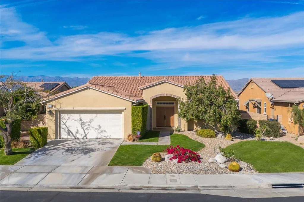 PALM SPRINGS... $20K PRICE IMPROVEMENT! Perfectly positioned near premier shopping, dining, golf, world-class casinos and entertainment, this exceptional home captures the true essence of the Palm Springs lifestyle. Offering 2,288 sq. ft. of beautifully designed living space, this open-concept floor plan features 3 bedrooms and 2 bathrooms with a spacious, inviting layout. Soaring ceilings enhance the light-filled Great Room, complete with a modern gas fireplace and breathtaking panoramic mountain, city, and desert views. Stunning diagonal tile flooring with custom medallion inlays highlights the entry, walkways, and kitchen areas. Wood blinds are featured throughout, while both the Great Room and the primary suite enjoy picturesque mountain vistas. The primary suite offers a generous walk-in closet and a well-appointed bath with dual vanities, a soaking tub, and an oversized shower. Two additional bedrooms provide flexible space for guests, an office, or hobbies. Designed for both everyday living and entertaining, the kitchen features abundant cabinetry, a large center island, pantry & breakfast nook, leading to the formal dining room. A dedicated laundry room leads directly to the two-car garage. The home also includes an owned whole-house water filtration system. The Four Seasons resort-style clubhouse, complete with full time staff, offers fitness & aerobics studios, game room, library, and endless social events. Residents also enjoy swimming pools, spas, tennis & pickleball courts, BBQ pavilion, and scenic walking trails--all designed to capture the active Palm Springs lifestyle. Low HOA's include Frontier fiber-optic internet. Just minutes from downtown Palm Springs, experience the ultimate lifestyle where luxury & convenience merge as one.