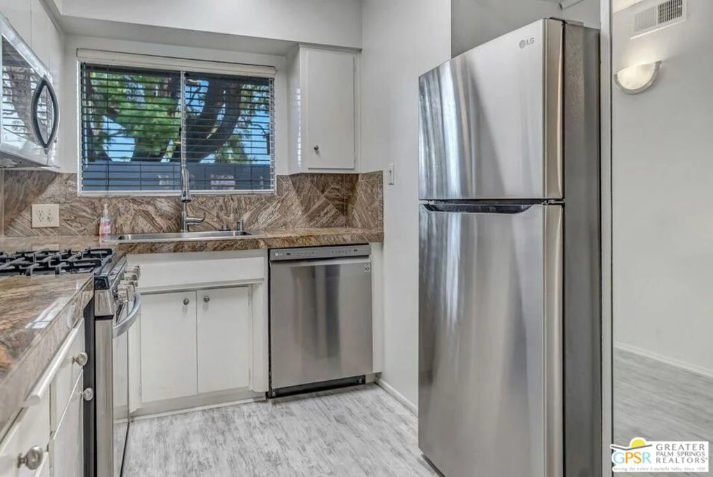 Improved Price! Resort-style living in the heart of Palm Springs! This unfurnished 2 bedroom, 2 bath single-level condo offers the perfect blend of mid-century charm and modern comfort. Located in the historic Desert Lanai community designed by renowned architect Charles Du Bois and built by the Alexander Construction Company you'll be surrounded by the timeless style that makes Palm Springs famous. Inside, the condo features granite tile countertops, stainless steel appliances with a gas stove, wood-look vinyl flooring, tiled bathrooms, and ceiling fans throughout. Two patios provide outdoor living options: one with a pool view and another more private space to relax. Covered parking and storage are included. The beautifully landscaped grounds showcase a sparkling pool framed by breathtaking mountain views, creating a true desert oasis. All just minutes from downtown, the Convention Center, and Spa Casino where dining, shopping, and entertainment are right at your fingertips. Rarely available in Desert Lanai II don't miss the chance to call this iconic Palm Springs community home!